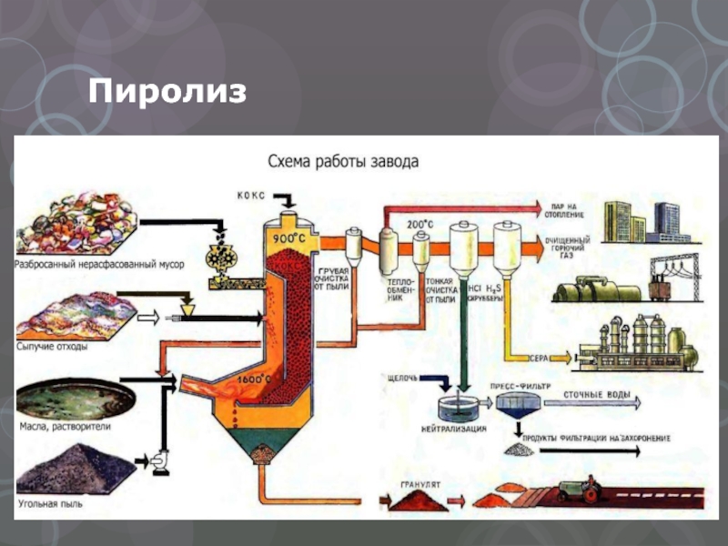 Экологически более рациональным методом является пиролиз– разложение органического вещества на