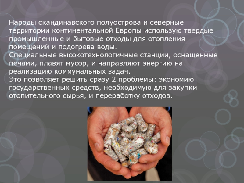 промышленные и бытовые отходы для отопления помещений и подогрева воды.