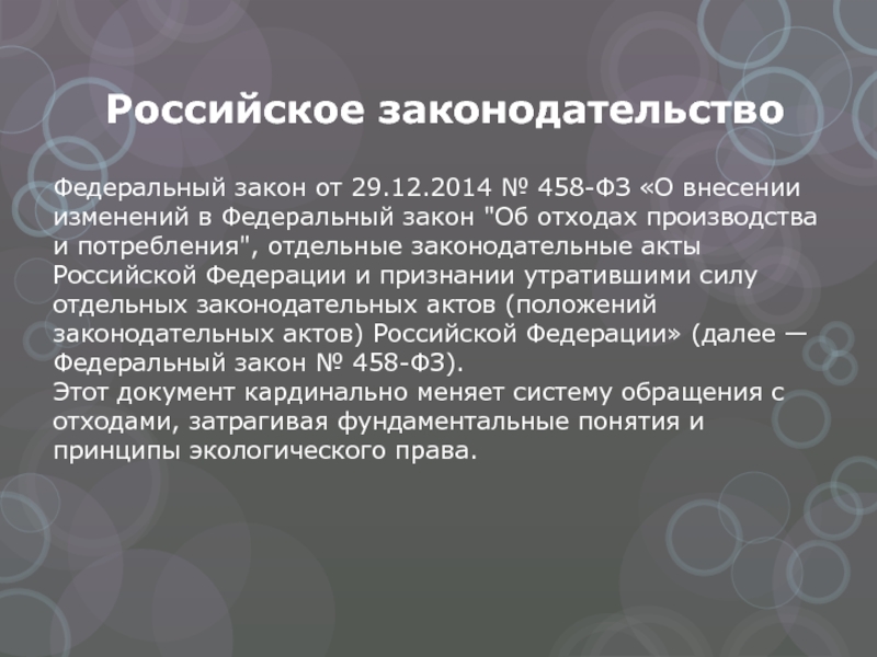 Этот документ кардинально меняет систему обращения с отходами, затрагивая фундаментальные понятия и принципы экологического права.