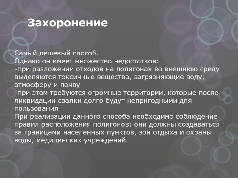 -при этом требуются огромные территории, которые после ликвидации свалки долго будут непригодными для пользования