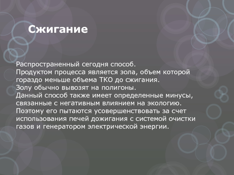 Поэтому его пытаются усовершенствовать за счет использования печей дожигания с системой очистки газов и генератором электрической энергии.