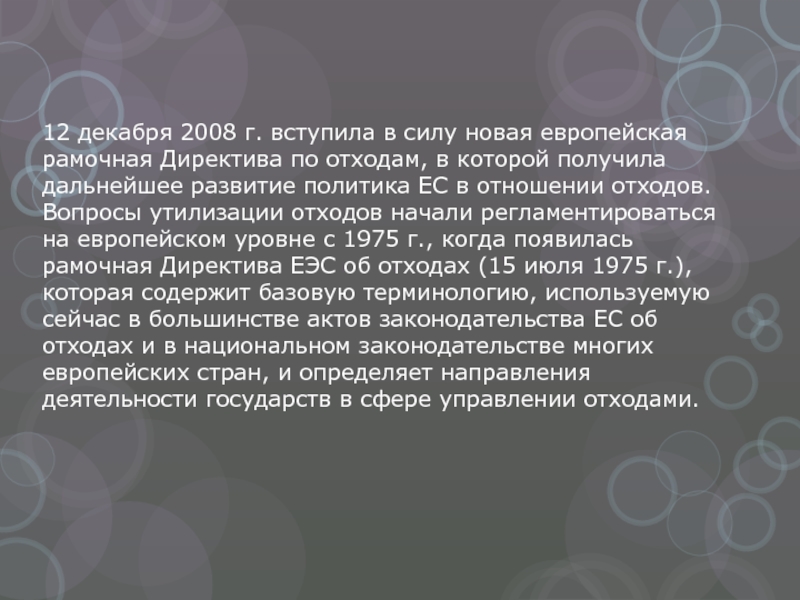 Слайд 2012 декабря 2008 г. вступила в силу новая европейская рамочная