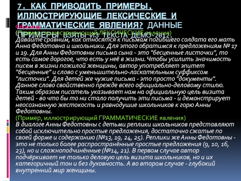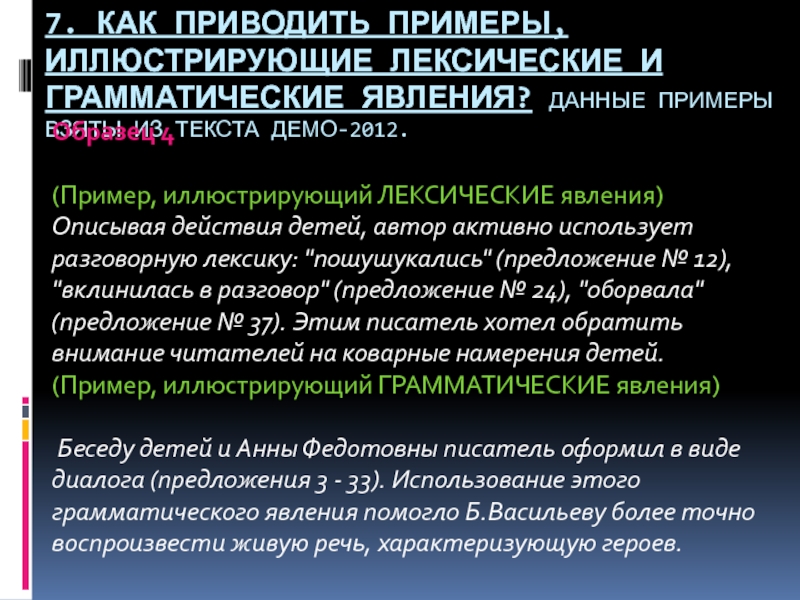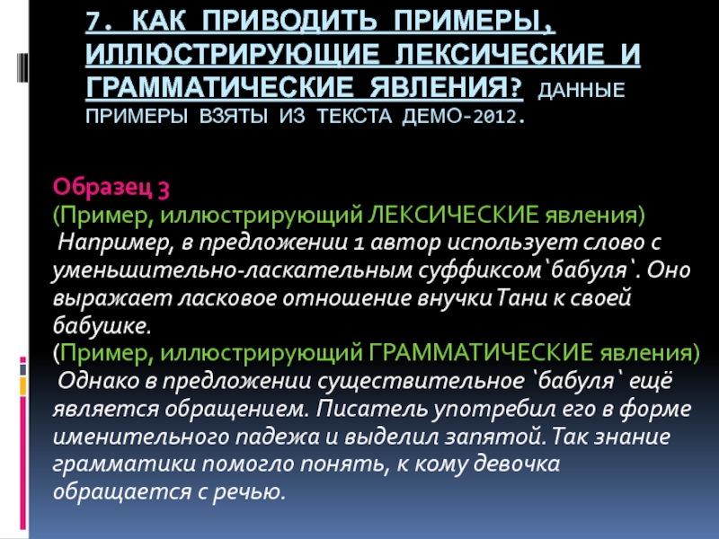 Слайд 197. Как приводить примеры, иллюстрирующие лексические и грамматические явления? Данные примеры