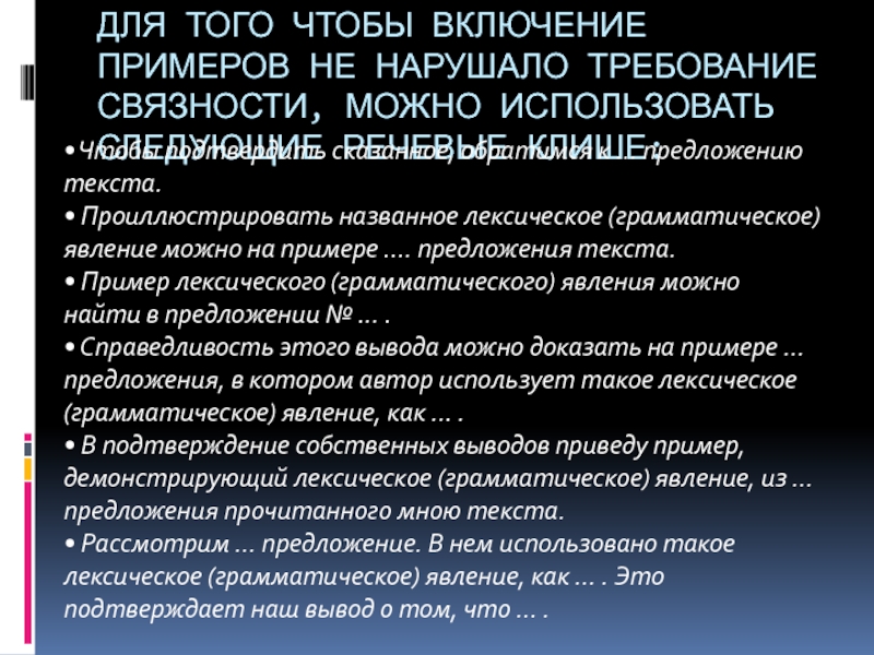 Слайд 115. Требования к примерам, иллюстрирующим лексические и грамматические явления
