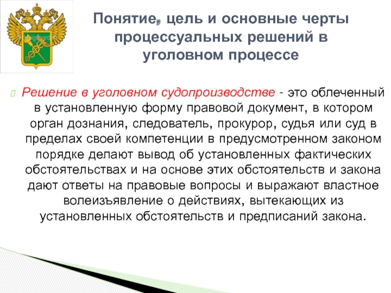 Понятие, цель и основные черты процессуальных решений в уголовном процессе
