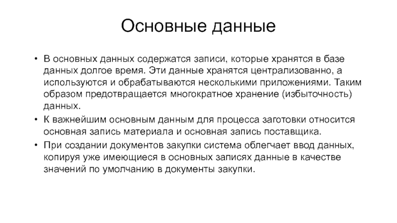 К важнейшим основным данным для процесса заготовки относится основная запись материала и основная запись поставщика.
