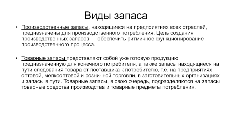 Производственные запасы, находящиеся на предприятиях всех отраслей, предназначены для