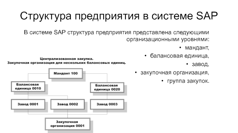 логистики и финансов в SAP. Организационными уровнями в системе являются структуры, которые представляют юридические или организационные ракурсы компании.