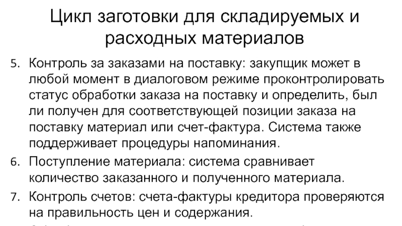 Слайд 10Цикл заготовки для складируемых и расходных материалов