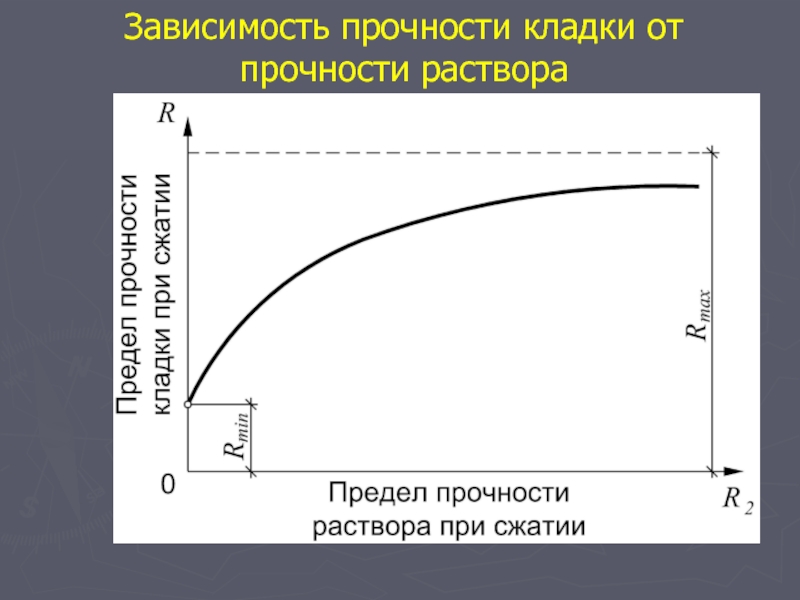 Слайд 3Зависимость прочности кладки от прочности раствора