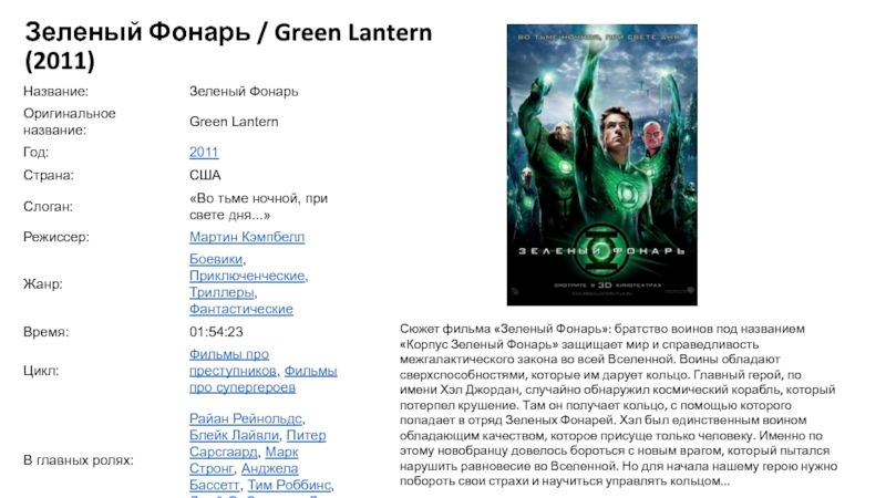 Слайд 8Зеленый Фонарь / Green Lantern (2011)