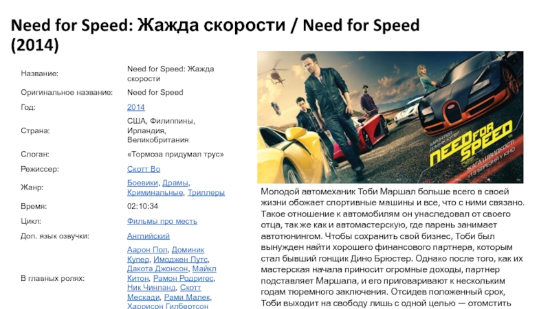 Слайд 20Need for Speed: Жажда скорости / Need for Speed (2014)