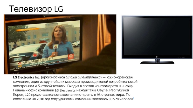 в состав конгломерата LG Group. Главный офис компании LG Electronics находится в Сеуле, Республика Корея, 120 представительств компании открыты в 95 странах мира. По состоянию на 2010 год сотрудниками компании являлись 90 578 человек[