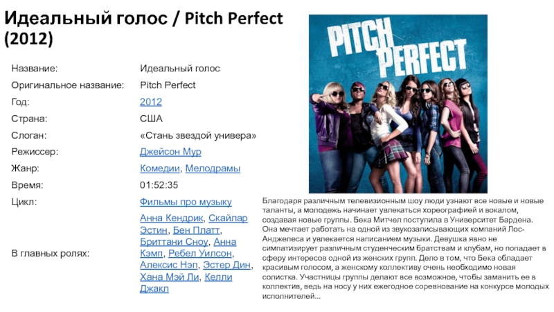Слайд 15Идеальный голос / Pitch Perfect (2012)