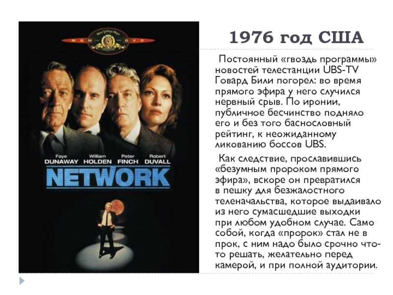 1976 год США   Постоянный «гвоздь программы» новостей телестанции UBS-TV Говард Били погорел: во время прямого эфира