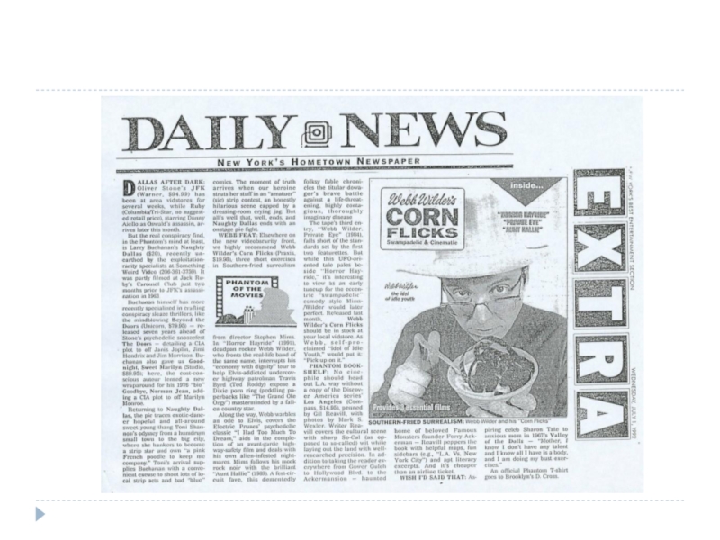 Слайд 29+ аудиально: «И вся первая страница «Daily News» о Говарде