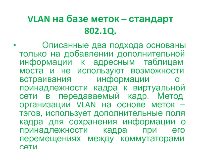 Слайд 43VLAN на базе меток – стандарт 802.1Q.