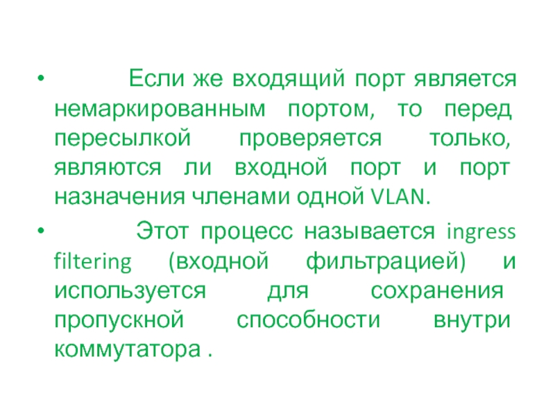 немаркированным портом, то перед пересылкой проверяется только, являются ли входной