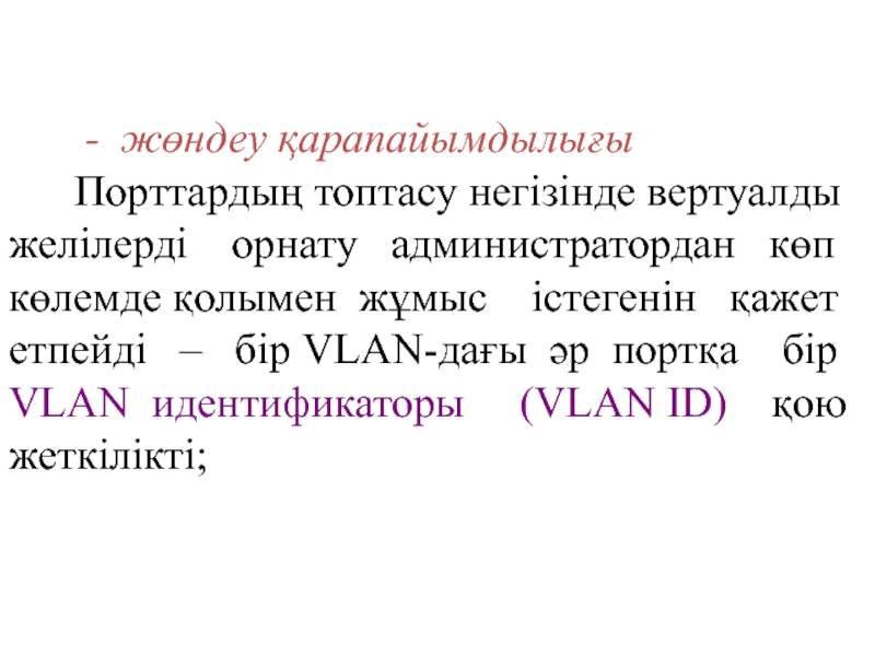 VLAN-ға керекті порт-тардың қарапайым белгілеуімен шектеледі;