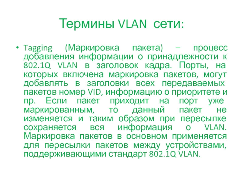Tagging (Маркировка пакета) – процесс добавления информации о