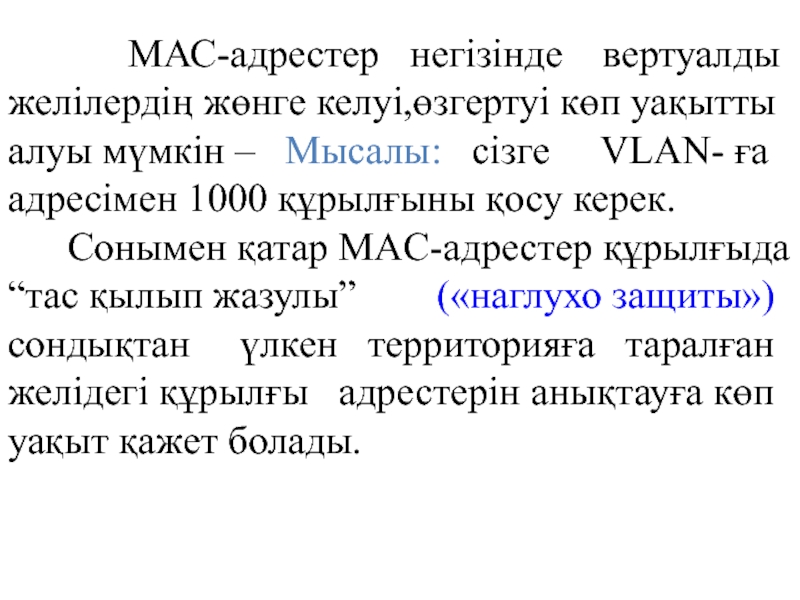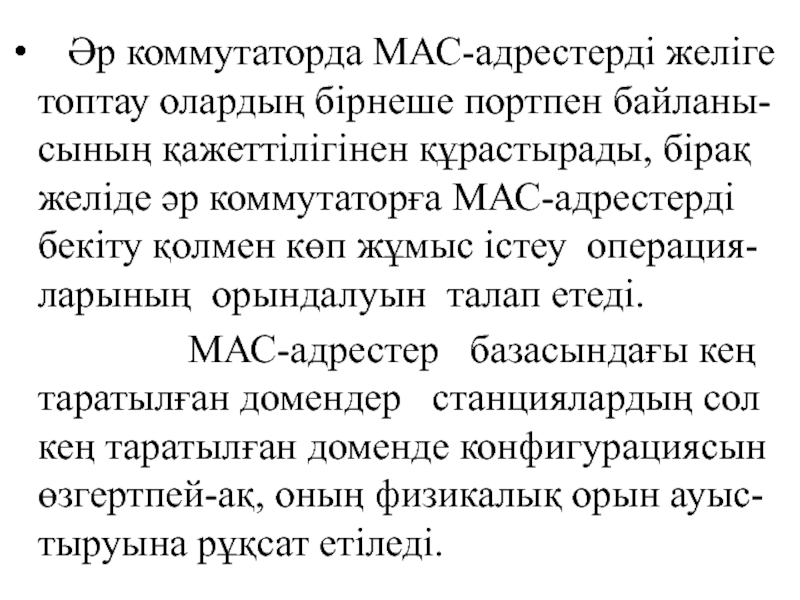 Слайд 18- өте тез және қарапайым конфигурациялау, ол МАС адрестердің