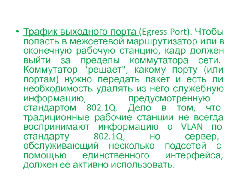 Слайд 57Трафик выходного порта (Egress Port). Чтобы попасть в межсетевой маршрутизатор