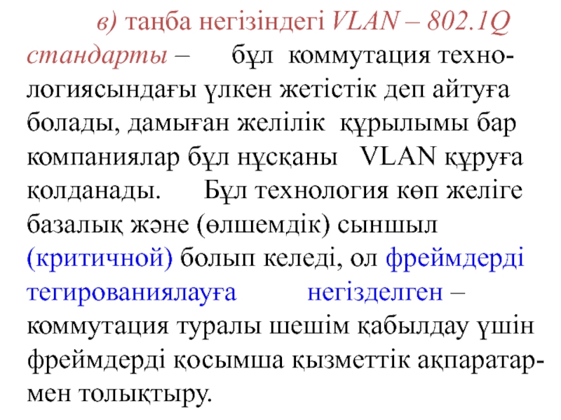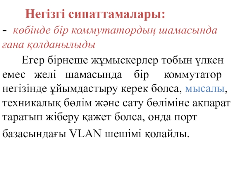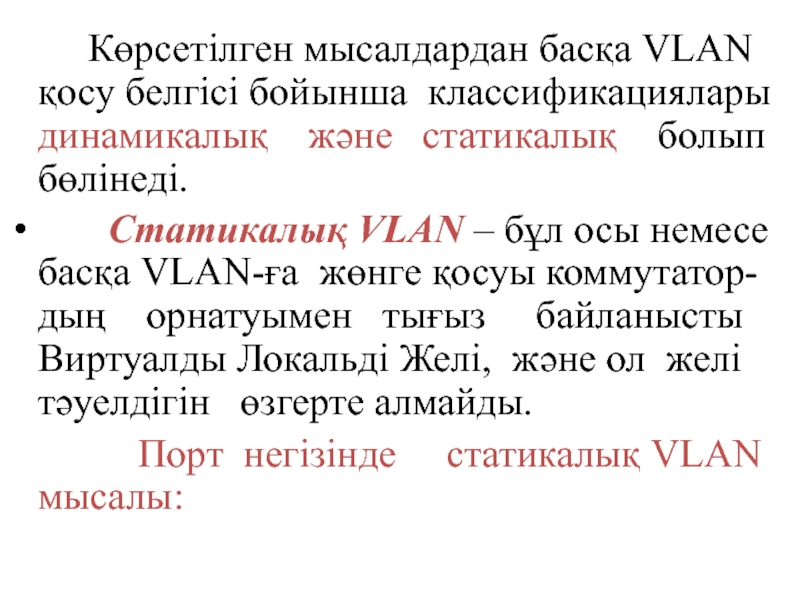 Слайд 15 Көрсетілген мысалдардан басқа VLAN қосу белгісі