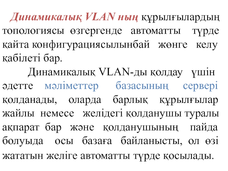 Слайд 20 Динамикалық VLAN ның құрылғылардың топологиясы өзгергенде автоматты
