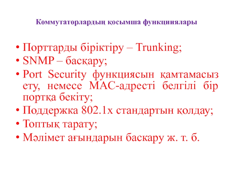Слайд 8Коммутаторлардың қосымша функцииялары