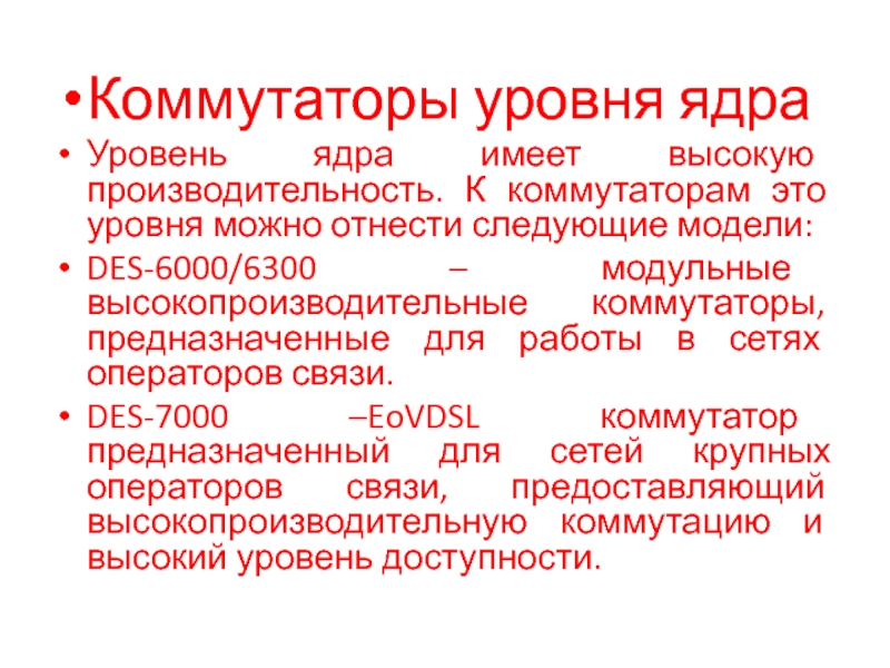 Слайд 4DES-6000/6300 – коммутаторы этой серии поддерживают до 128 портов 10/100