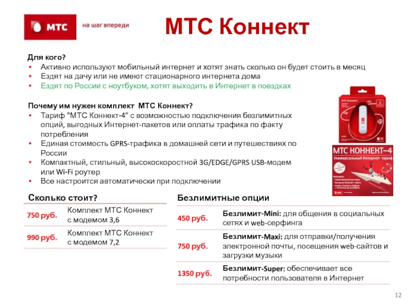 Для абонентов, которые пользуются обычным тарифом МТС и покупают (уже пользуются) Интернет-тариф МТС: Коннект, Онлайнер, iPad.