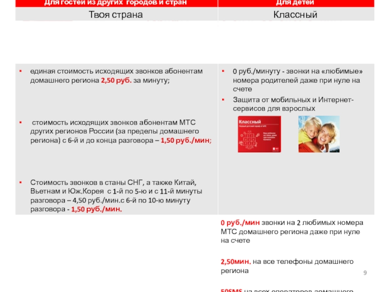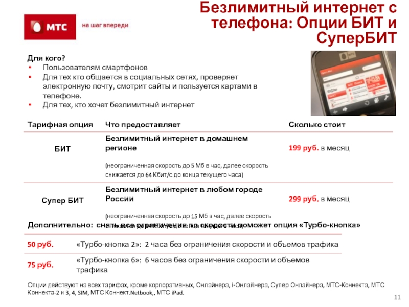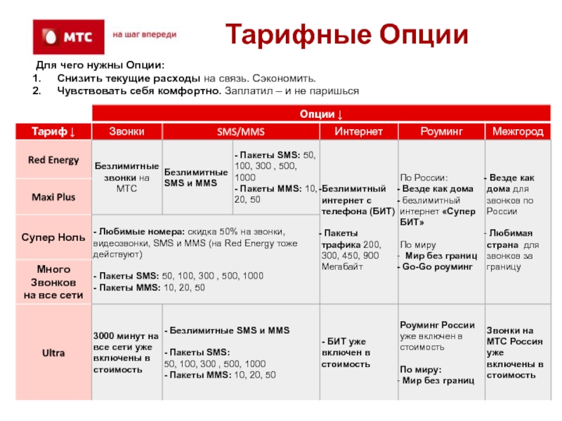 Опции действуют на всех тарифах, кроме корпоративных, Онлайнера, i-Онлайнера, Супер Онлайнера, МТС-Коннекта, МТС Коннекта-2 и 3, 4, SIM, МТС Коннект.Netbook,, МТС iPad.