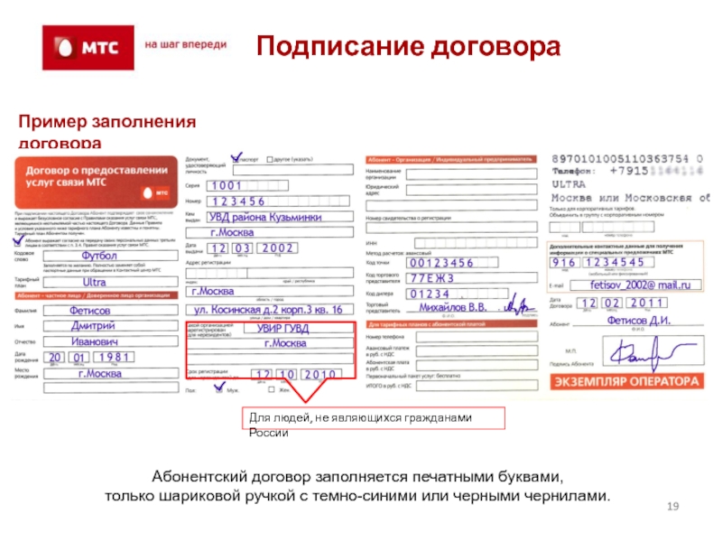 при обслуживании в МТС более 3-х мес. и наличие не менее 3-х выставленных счетов