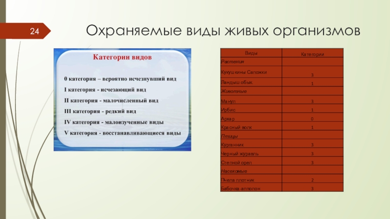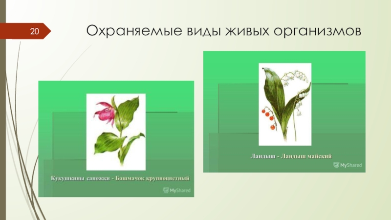 Охраняются 8,6% видов сосудистых растений, 23,4% видов млеко - питающих, 26,2% видов птиц, 20% - рыб, 16,7% - пресмыкающихся, 28,6% - земноводных.