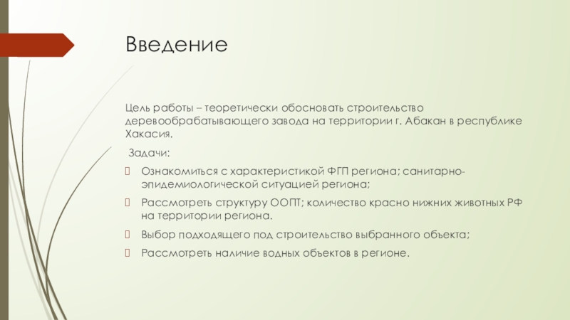 Цель работы – теоретически обосновать строительство деревообрабатывающего завода на территории