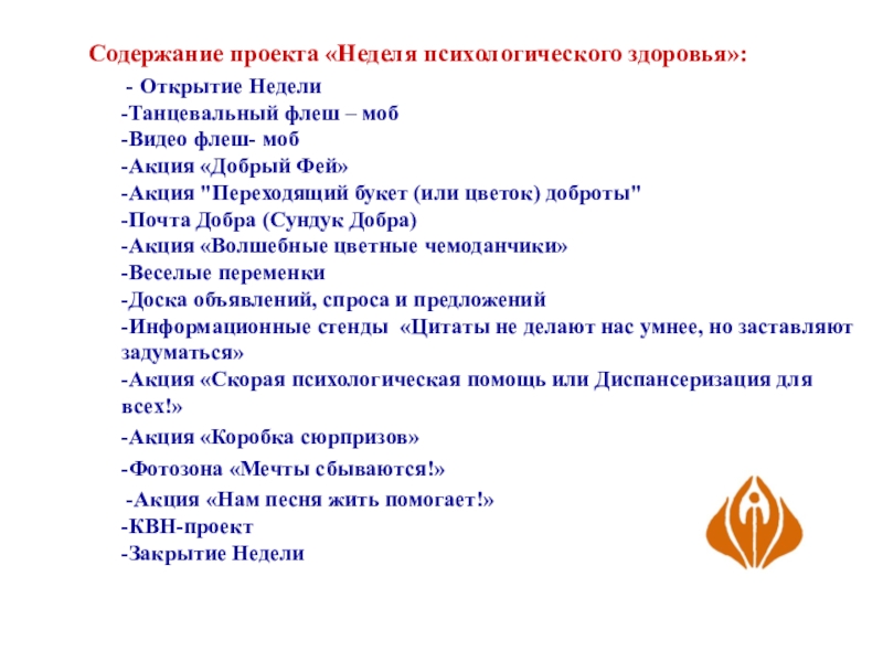Содержание проекта «Неделя психологического здоровья»: