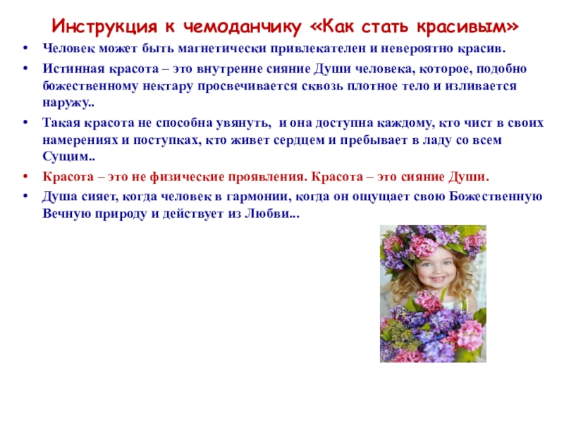 Слайд 13Инструкция к чемоданчику «Как стать красивым»