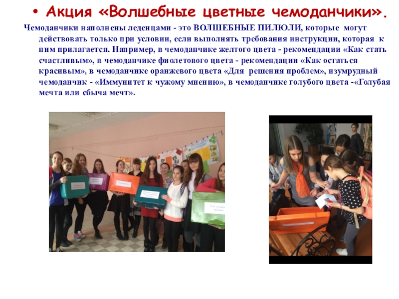 Слайд 11Акция «Волшебные цветные чемоданчики».