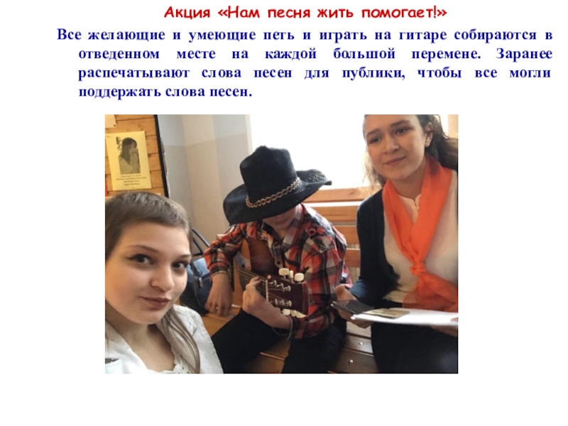Слайд 19Акция «Нам песня жить помогает!»