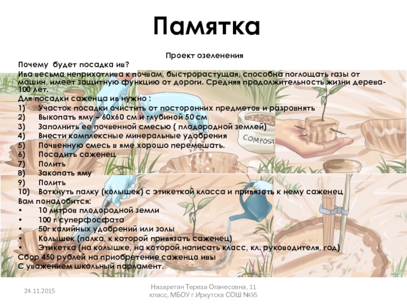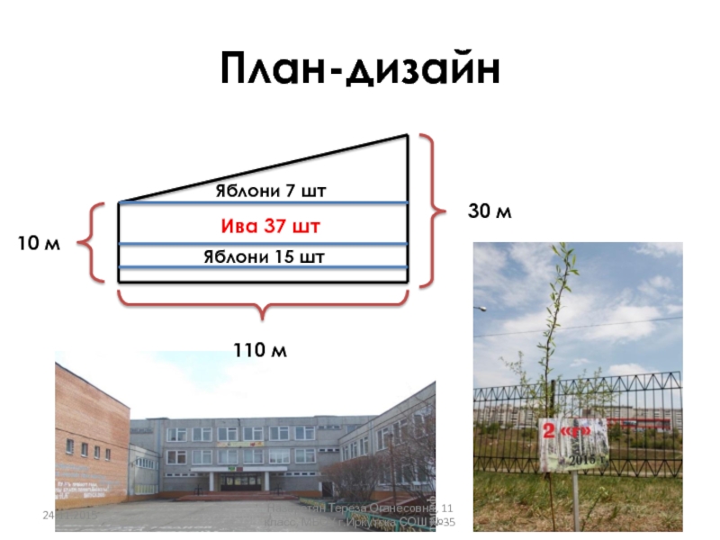 1.Разработать план - дизайн озеленения школы. Представить проект учащимся, родителям и учителям