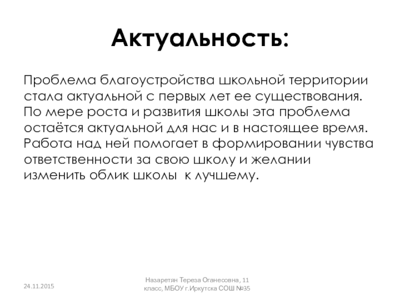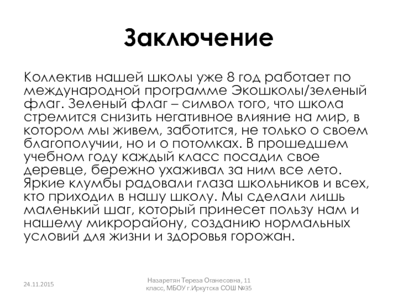 Назаретян Тереза Оганесовна, 11 класс, МБОУ г.Иркутска СОШ №35