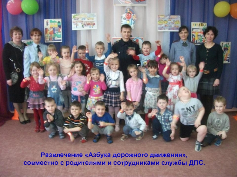 Проведение развлечения «Азбука дорожного движения», совместно с родителями и сотрудниками полиции службы ДПС.