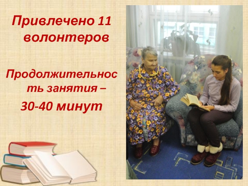 Продолжительность занятия – 30-40 минутПривлечено 11 волонтеров