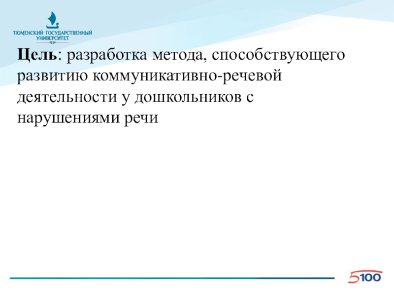 Слайд 3Цель: разработка метода, способствующего развитию коммуникативно-речевой деятельности у дошкольников с