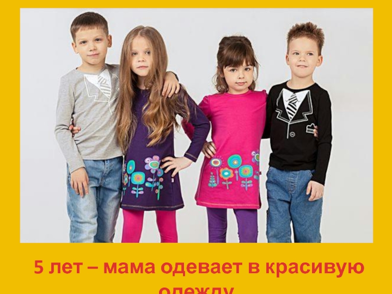 Слайд 105 лет – мама одевает в красивую одежду.