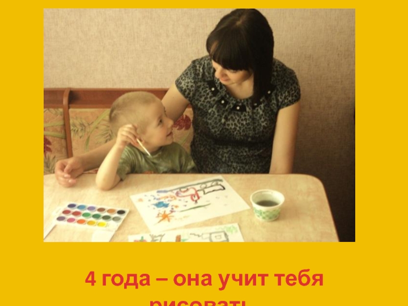 Слайд 84 года – она учит тебя рисовать.