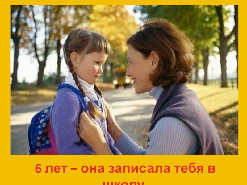 Слайд 126 лет – она записала тебя в школу.