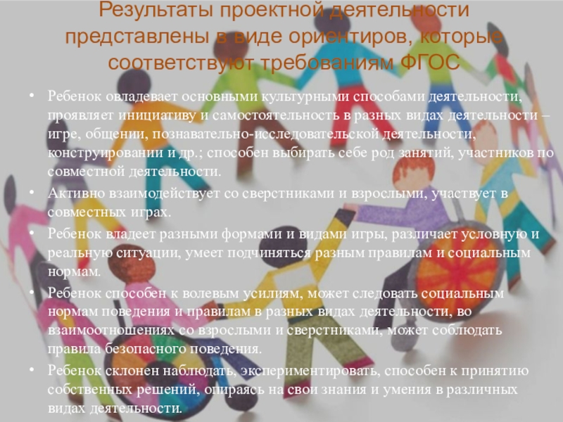Слайд 30Результаты проектной деятельности представлены в виде ориентиров, которые соответствуют требованиям