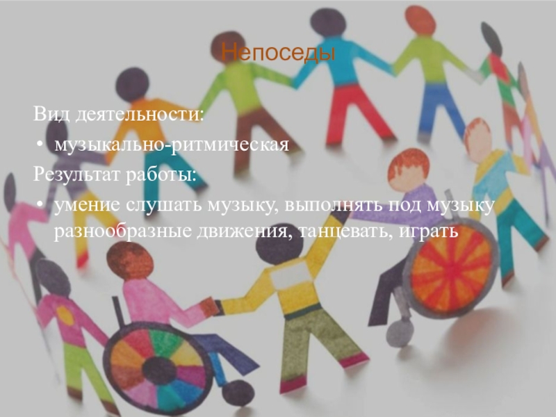 инструментах, выполняют ритмический рисунок к песням, отгадывают загадки, рисуют настроение музыки и другое, слушают небольшие музыкальные произведения