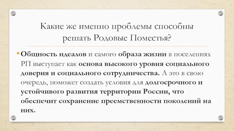 Слайд 12Какие же именно проблемы способны решать Родовые Поместья?
